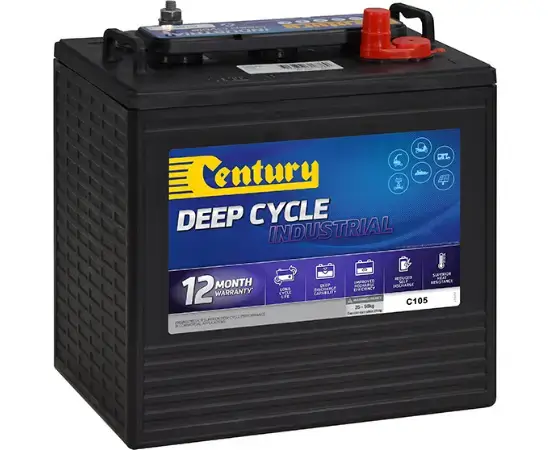 The Century C105 Deep Cycle Industrial battery is built for demanding commercial use, delivering reliable power for equipment that requires consistent deep cycling. Featuring heavy-duty internal connections, thicker cast plates, and excellent vibration and heat resistance, it provides long cycle life, strong discharge capability, and dependable performance in tough Australian operating conditions.