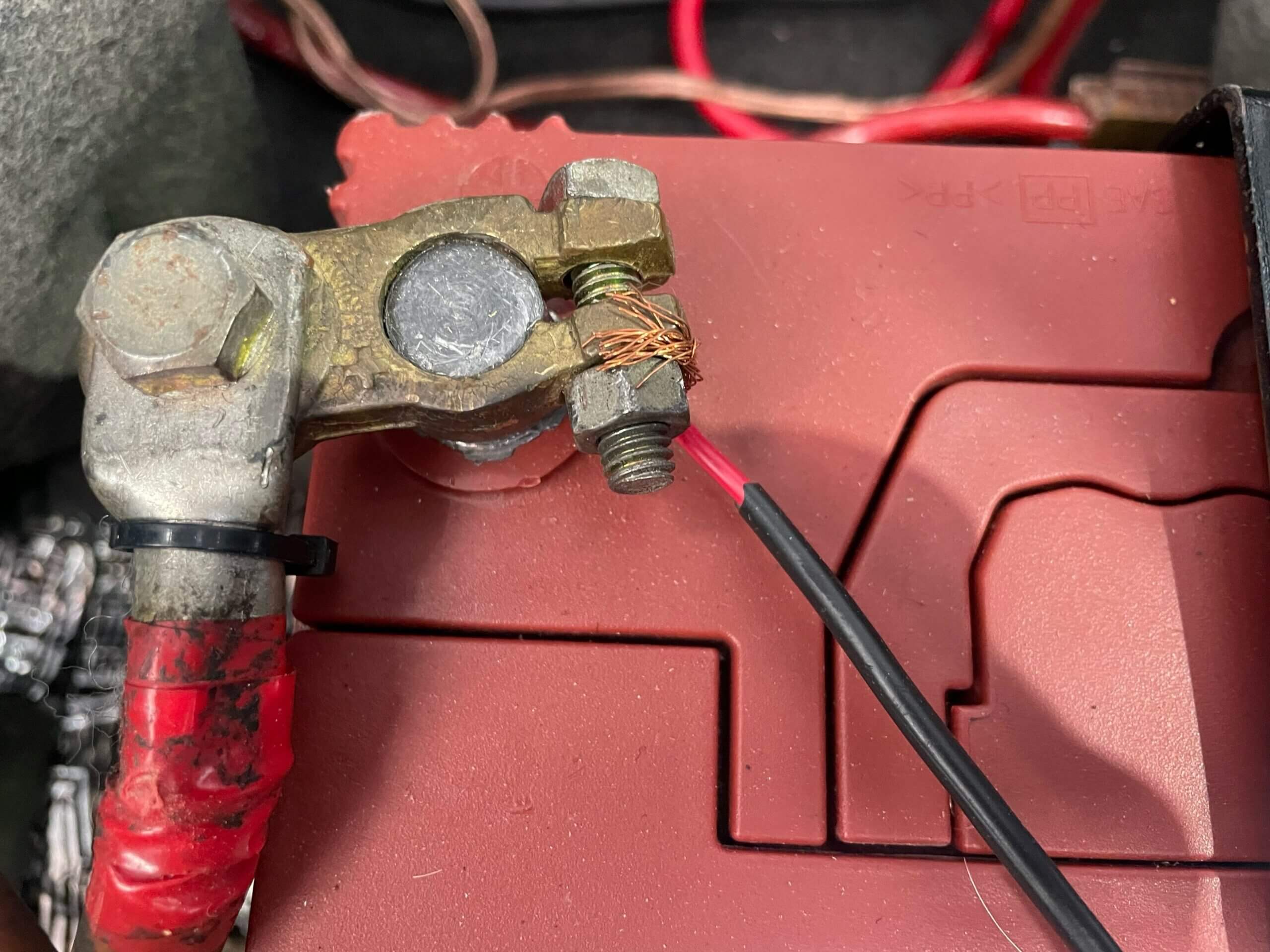- The wire for the sound system APM was wound around the positive terminal bolt.