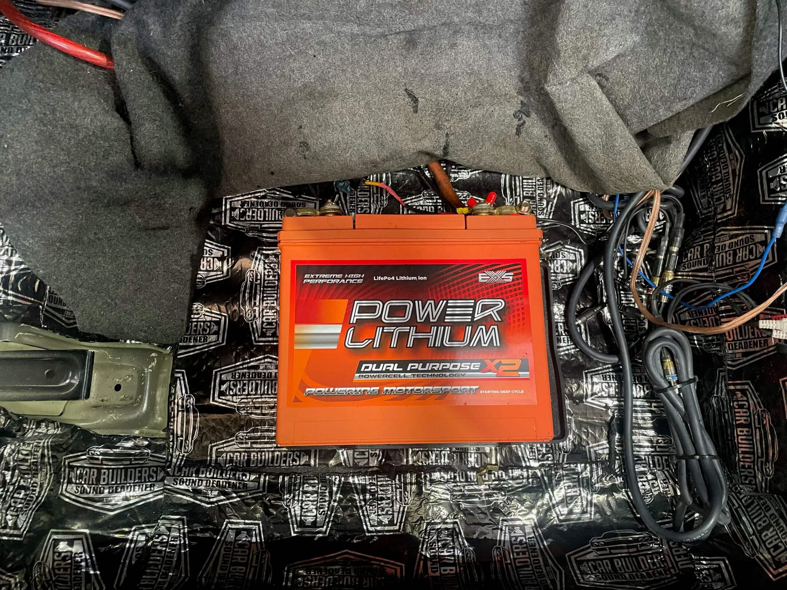 Because of the turbo conversion, there was no available space to place the lead acid battery back in the engine bay without extensive mechanical and engineering input. It was decided the safest conversion was a Lithium starting battery placed in the boot, on its side to allow clearance for the boot shelf to be reinstalled.